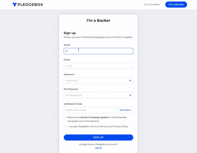1. Register a PledgeBox Backer Account & Update a new Email Address