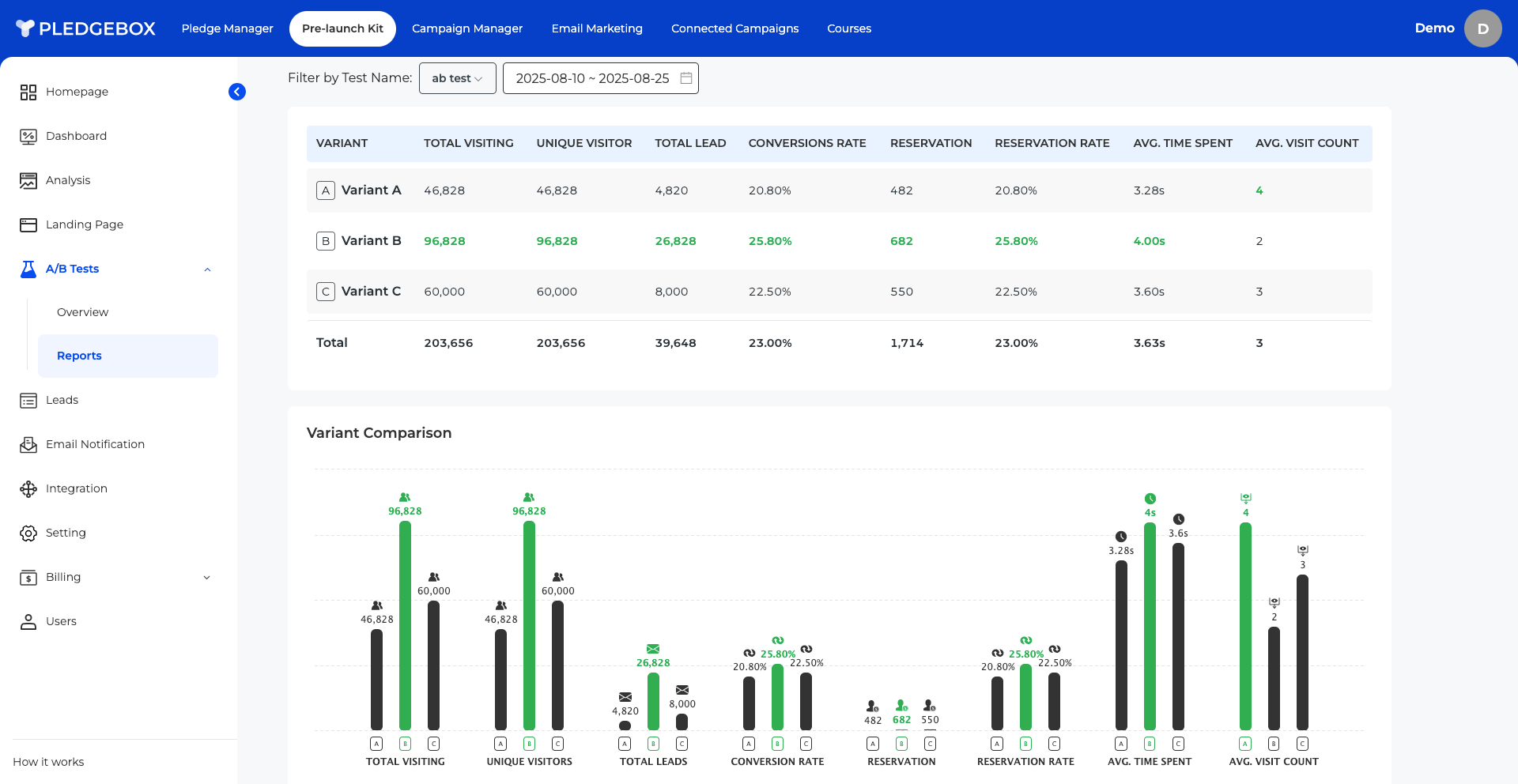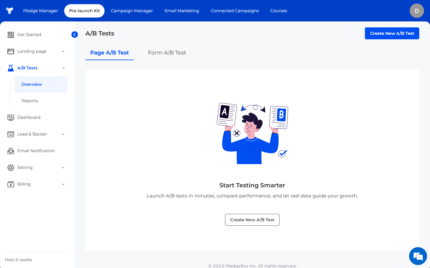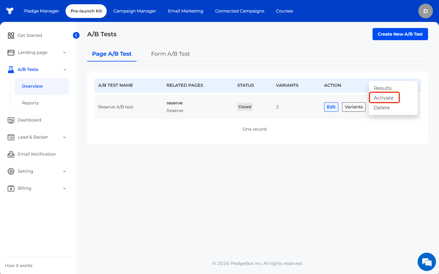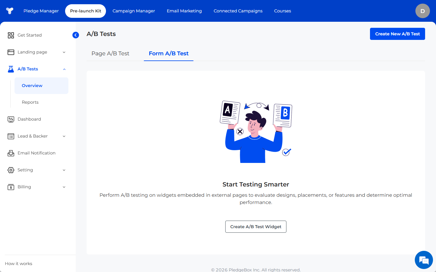 Pre-launch Kit → A/B Tests → Form A/B Test