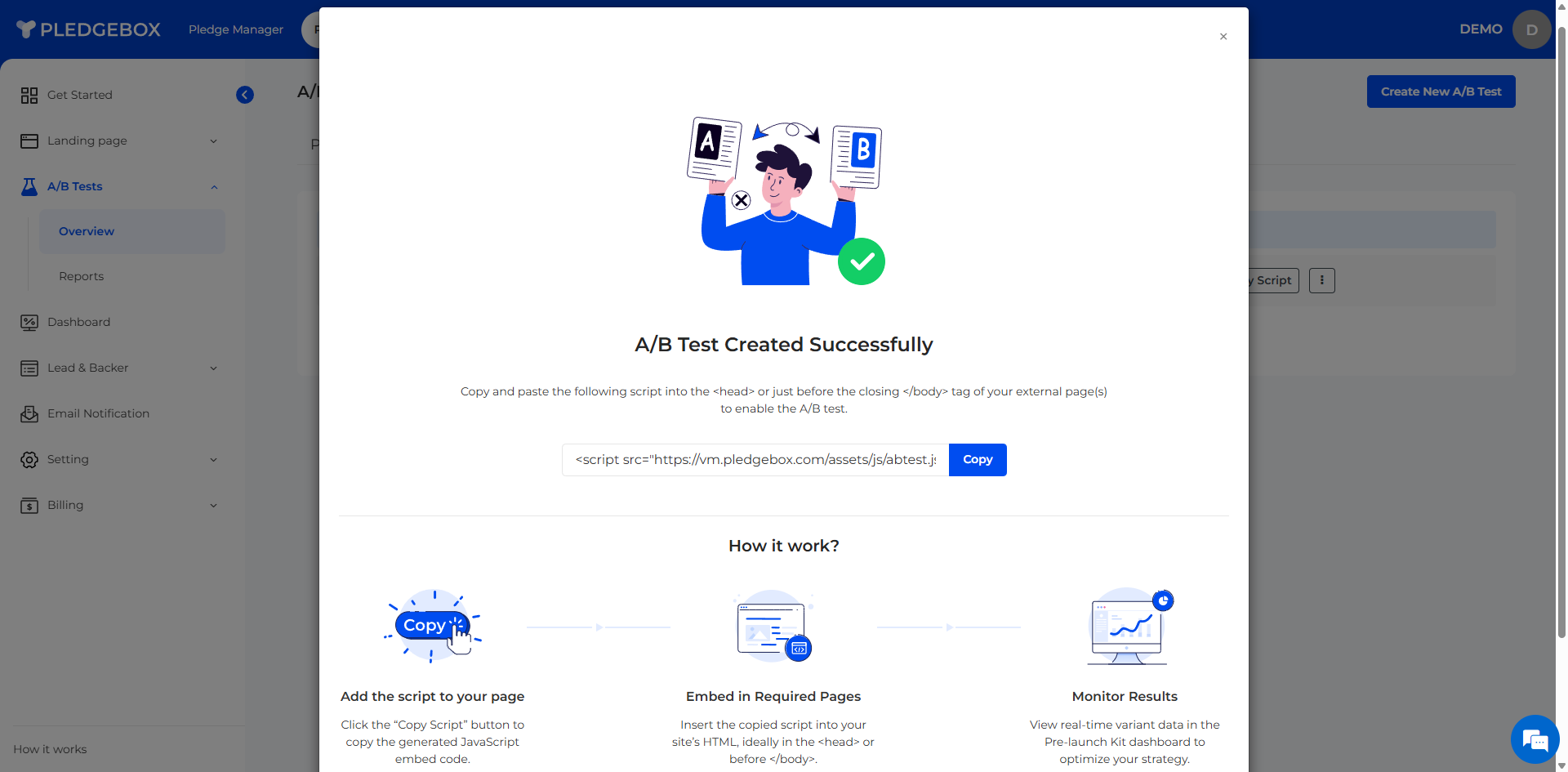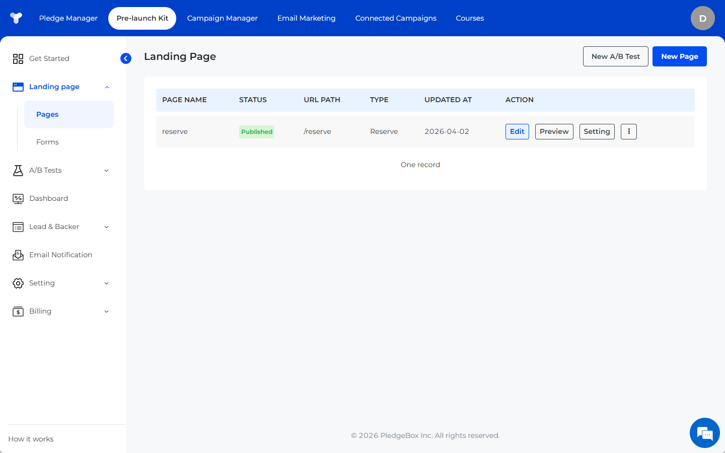 The A/B Test feature helps you compare different versions of your landing page to find out which one performs best. Follow the steps below to set up and manage your A/B tests effectively.