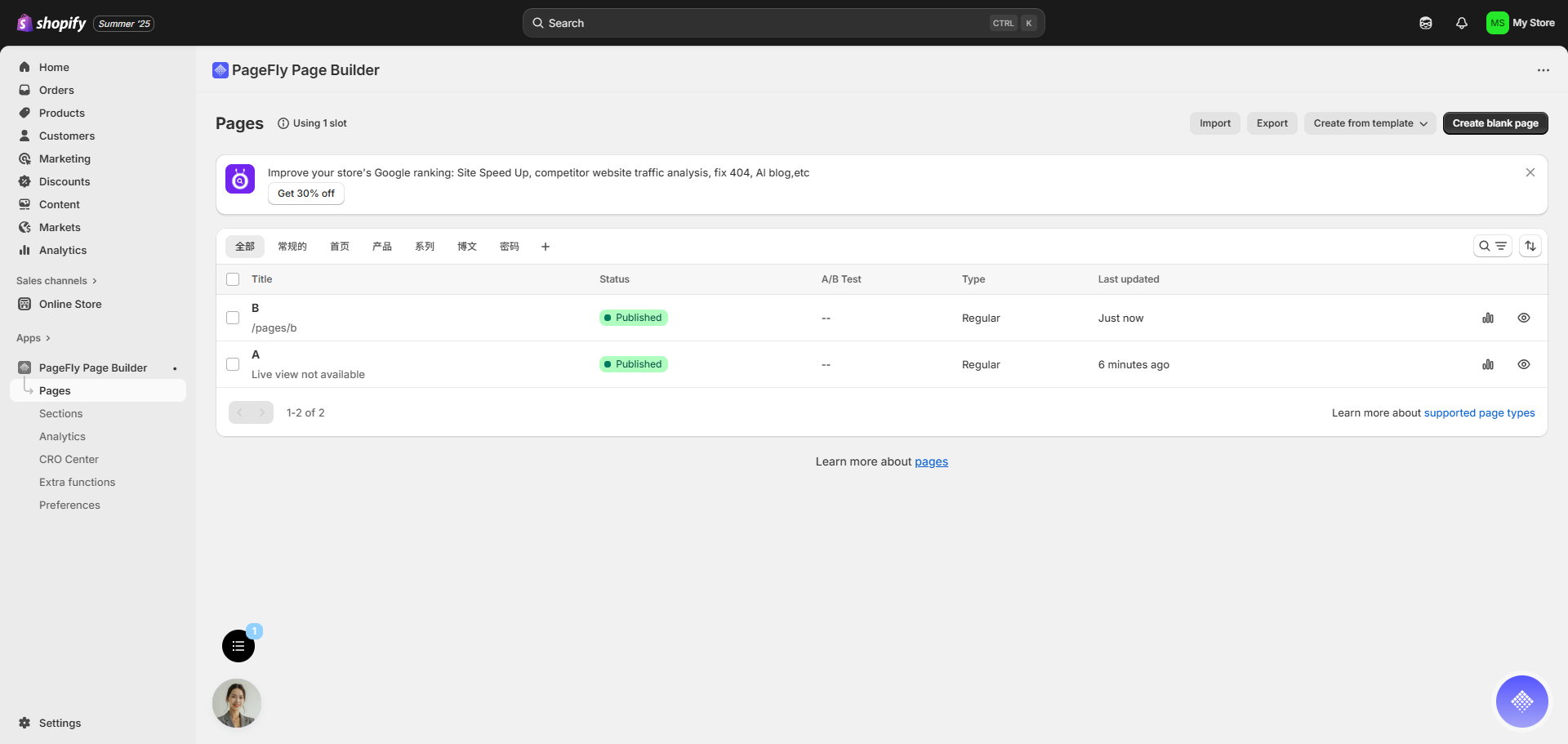 This option allows you to run A/B tests using external landing pages. Below, we’ll use PageFly Page Builder as an example to demonstrate how to set up an A/B test.