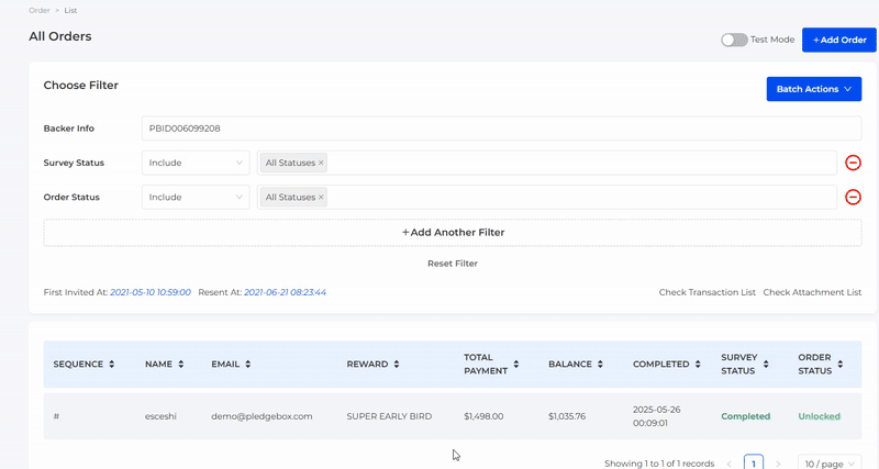 After a refund, when the order is in arrears, the survey status will change to inprogress and the backer will need to make a new payment.
