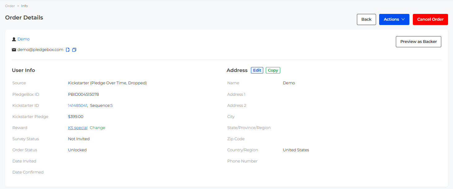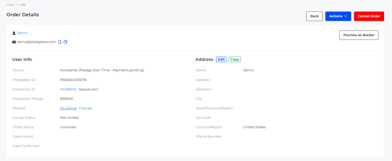Backers can only find their PBID in the confirmation emails and PledgeBox accounts, so the PBID can be used to confirm their identity as well. PB ID is the internal ID for each of your pledge/order. Like Kickstarter pledge sequence number, It is ...
