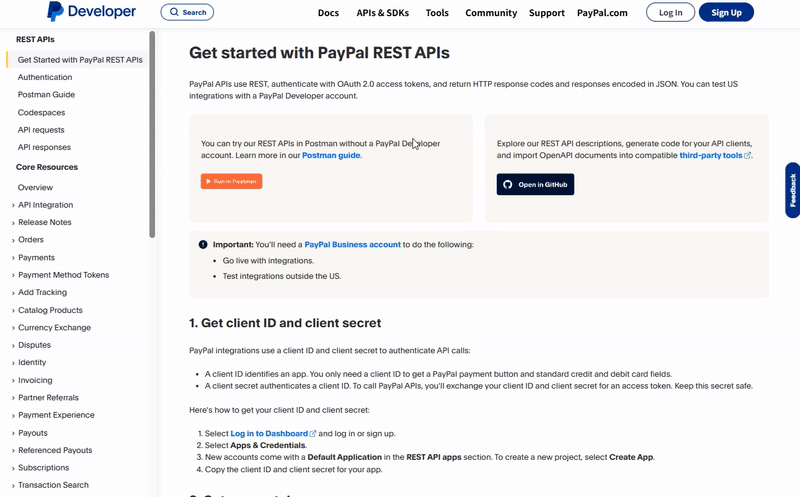 1)Navigate to Dashboard → Receive Payment → PayPal. On this page, you will be redirected to the PayPal Get Started page.
