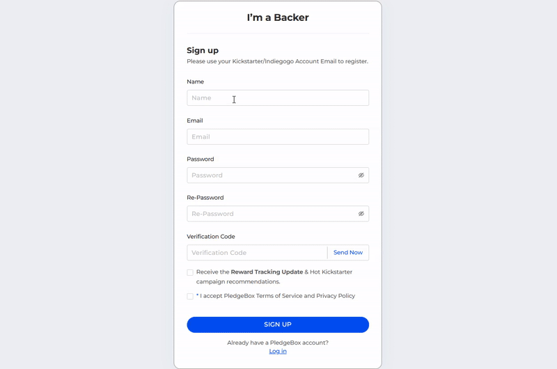 1. Create Your PledgeBox Account Sign up for a creator account. 2. Connect with Kickstarter/Indiegogo Campaign <br> Option 1: By inviting PledgeBox as collaborator Choose Invite PledgeBox as Collaborator Click Yes, the invitation has ...